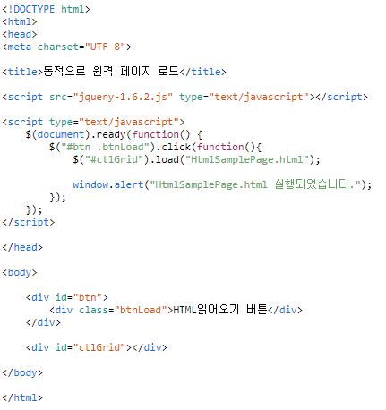 버튼 클릭시에 ctlGrid 영역으로 HtmlSamplePage.html을 불러오게 되어있다.