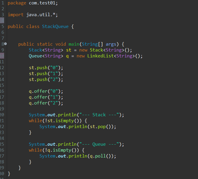 스택과 큐의 java 코드 및 실행결과